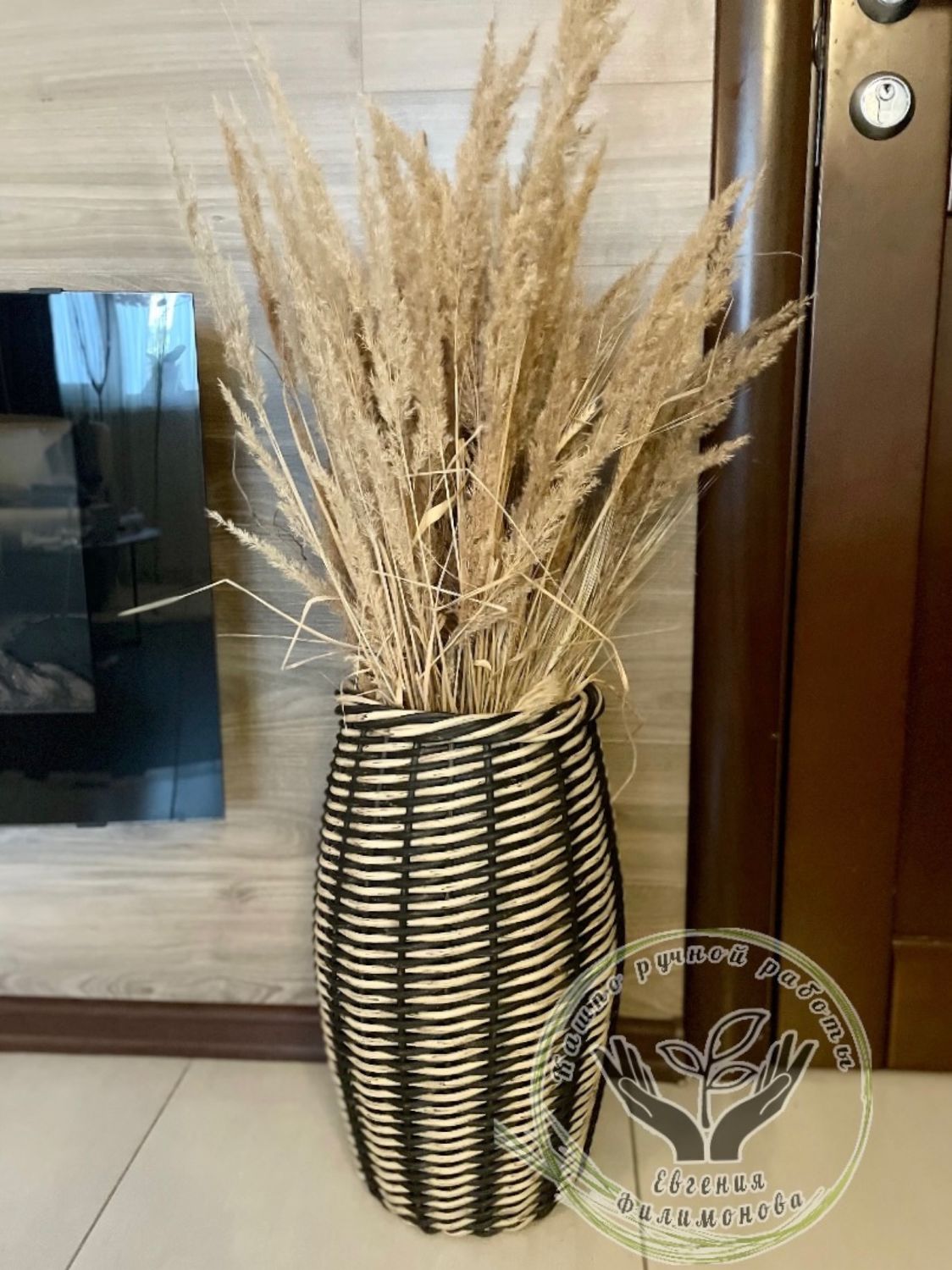 Такую вазу редко оставляют пустой. Ее природная фактура просит дополнения в виде сухоцветов, декоративных веток, бамбуковых стеблей или даже искусственных растений. Это создает целостную природную композицию, наполняя комнату теплом и уютом натуральных материалов.