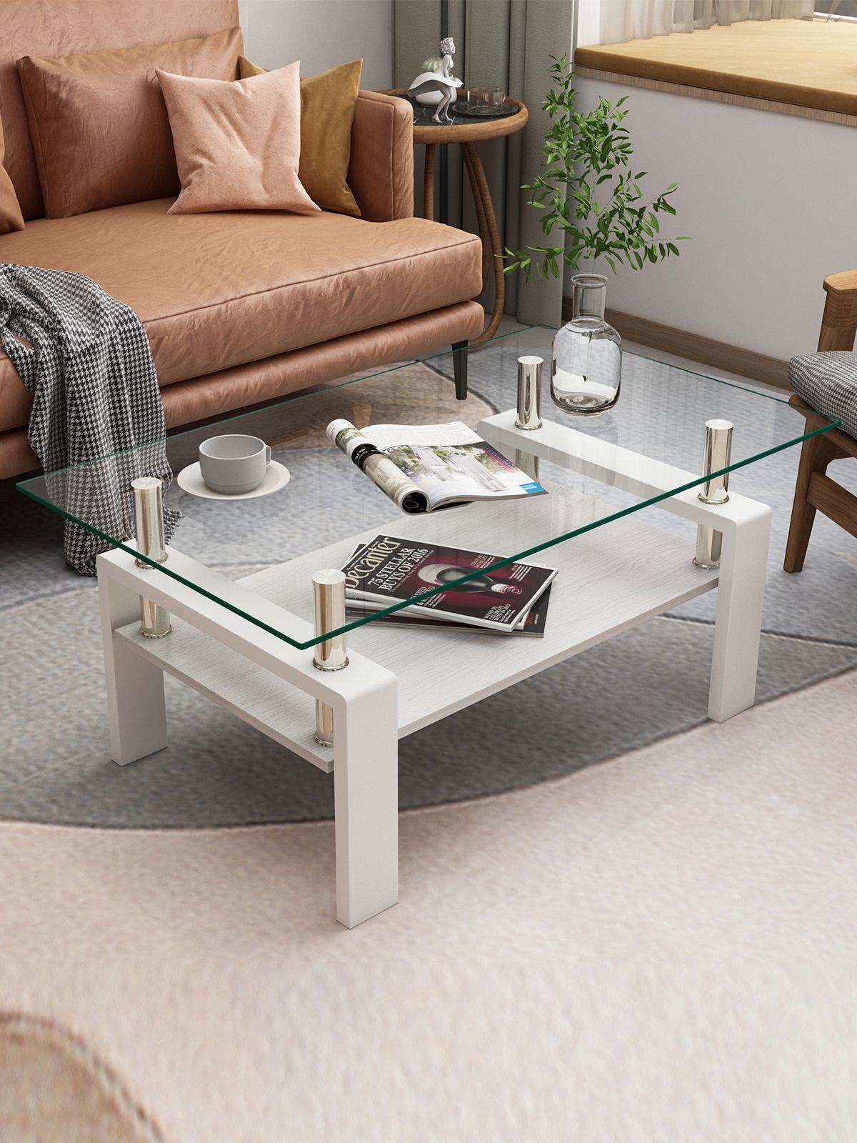 Журнальный столик со стеклянной поверхностью — это яркий акцент, способный преобразить пространство гостиной. Он придает интерьеру современный вид, ощущение легкости и стиля, становясь не просто предметом мебели, а центральным элементом декора. Такой столик отличается удивительной универсальностью: он может служить подставкой для книг и журналов, превращаться в мини-бар для вечеринок или в уютное место для чаепития.