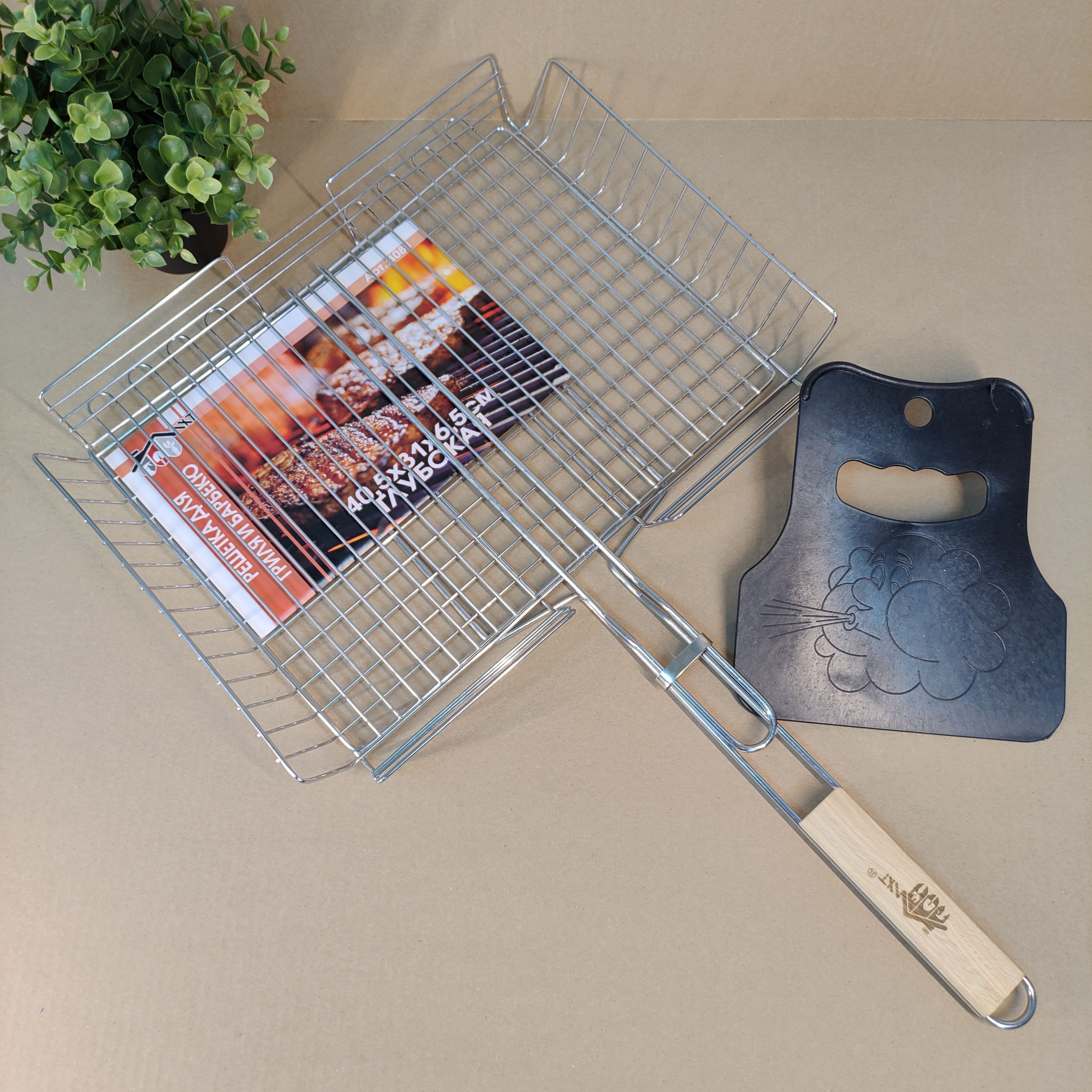 Конструктивно решетки делятся на два основных типа: одноплоскостные (простая сетка) и двухплоскостные (с двумя створками и ручкой, напоминающие «книжку»). Второй вариант особенно удобен для переворачивания продуктов без использования дополнительных инструментов.