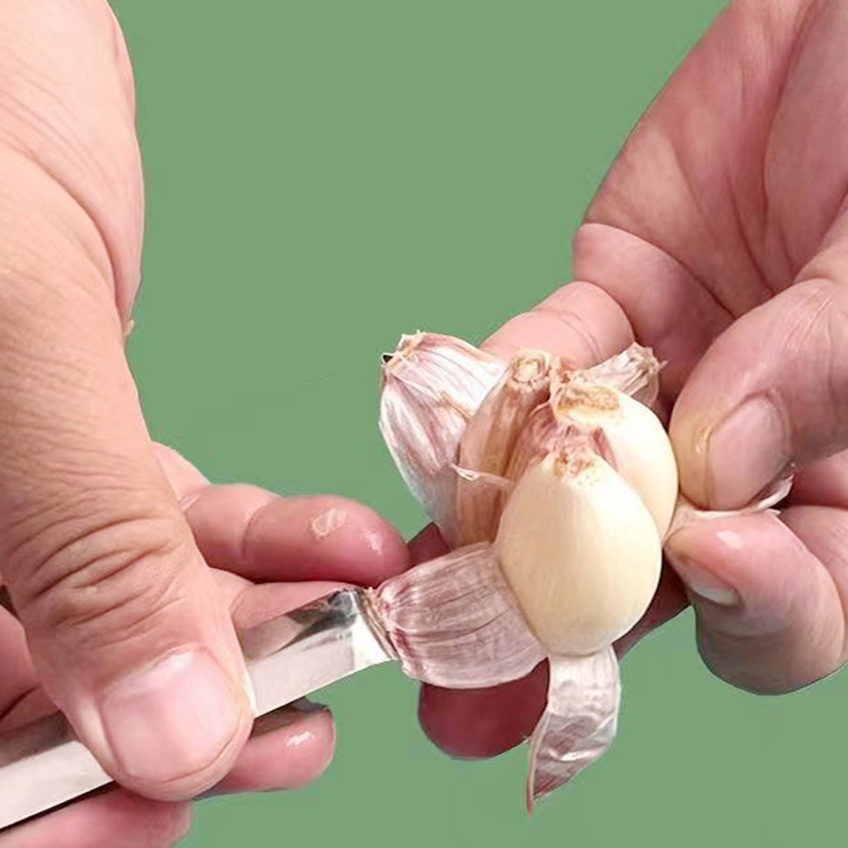 Пользовательница Twitter под ником @VPestilenZ, которая часто готовит корейские блюда, требующие много чеснока, продемонстрировала потрясающий приём. Она взяла головку чеснока, короткий нож для чистки овощей (или небольшой кухонный нож) и миску. Суть в следующем: не отделяя зубчики от головки, она вставляет кончик ножа в основание каждого зубчика и лёгким скручивающим движением вытаскивает его прямо в шелухе. Шелуха при этом аккуратно падает в миску, а чистый зубчик остаётся на кончике ножа, откуда его легко снять пальцем в другую ёмкость. Вращая головку в руке, можно очистить её всю буквально за полминуты.