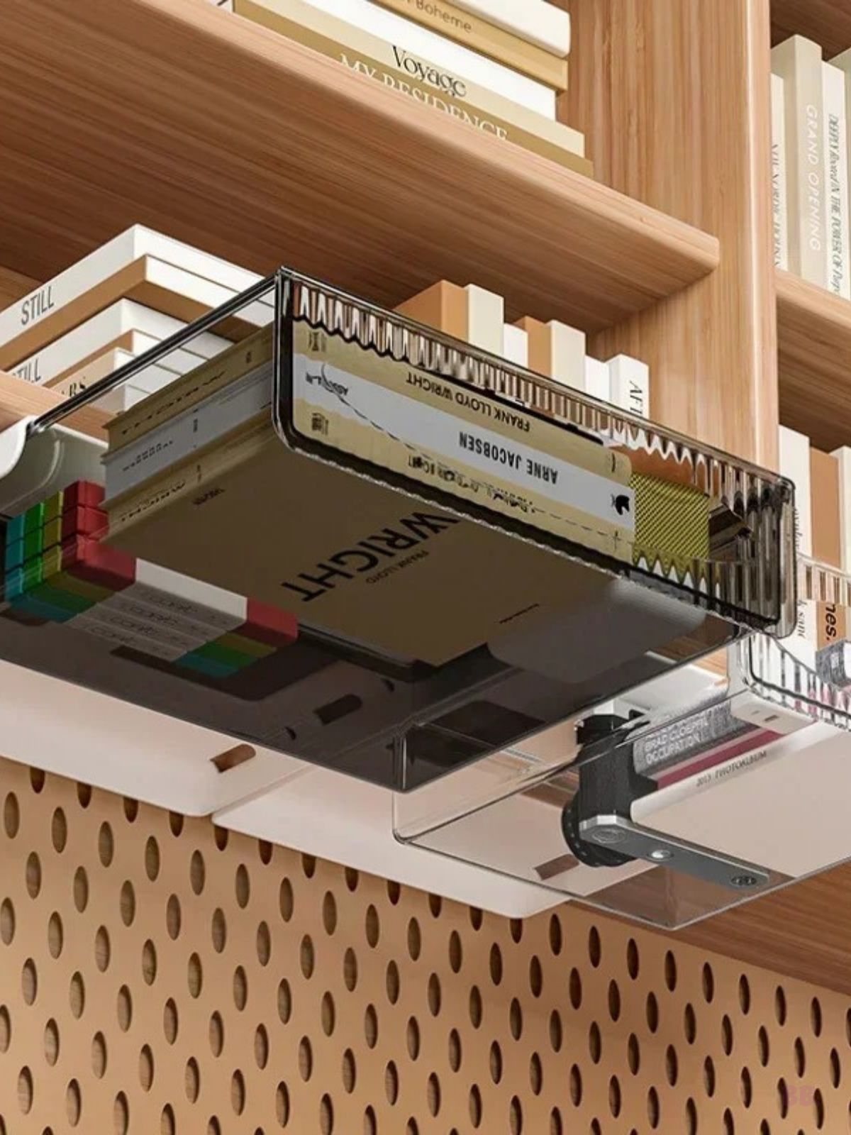 Чтобы использовать буквально воздушное пространство, обратите внимание на подвесные корзины. Их можно закрепить под полкой, столешницей или внутри стеллажа, получив дополнительное место для фруктов, кухонных полотенец или косметики.