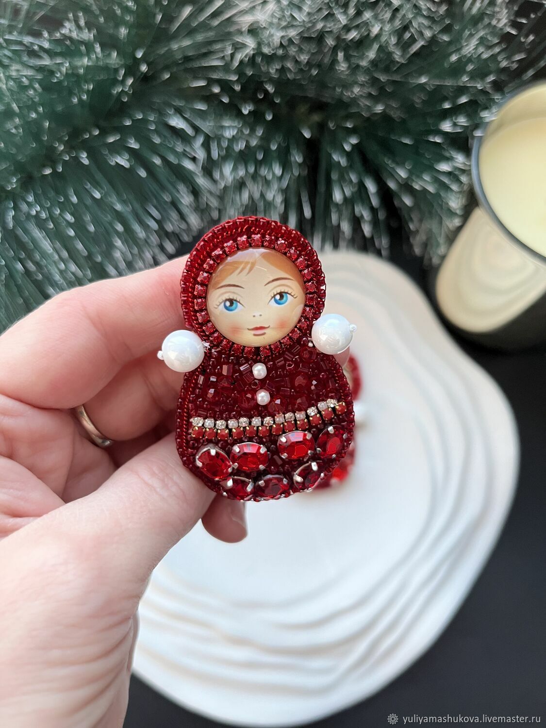 Основой для первых изделий стала простая схема из семи бусин, которую нужно было аккуратно повторить на булавке. Однако маленький размер булавок и еще более мелкий бисер превратили, казалось бы, простую задачу в настоящее испытание на ловкость и терпение. Пришлось изрядно повозиться!