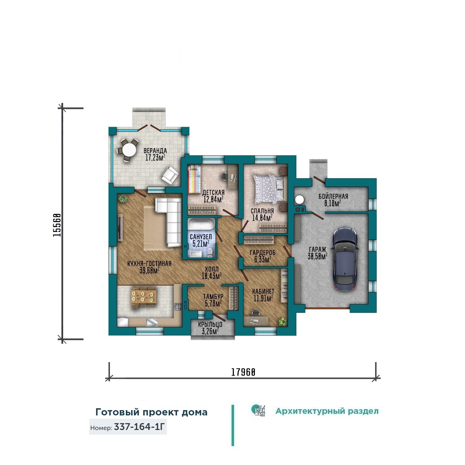 Таким образом, данный проект предлагает отличное решение для тех, кто ценит удобство одноэтажной планировки и нуждается в большом количестве отдельных комнат. Продуманное зонирование и рациональное использование площади делают этот дом комфортным и функциональным жильем для постоянного проживания.