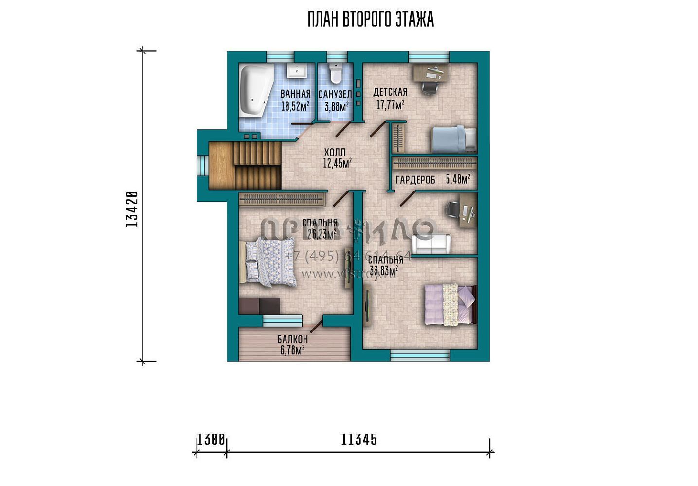 Мансардный этаж отведен под приватные спальные зоны, обеспечивая уединение для всех членов семьи.