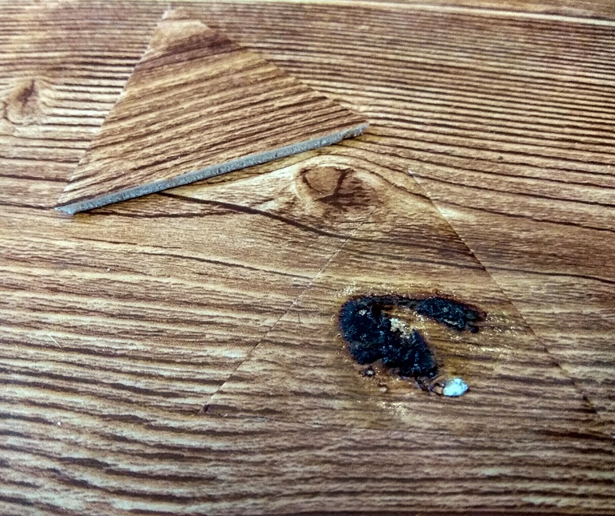 - Применение специальной мастики или холодной сварки: Более надёжный вариант — использовать профессиональные ремонтные составы. Перед покупкой важно подобрать правильный оттенок, ориентируясь на остатки линолеума после укладки. Если готовое средство недоступно, его можно изготовить самостоятельно, смешав гипс или мелкую стружку с клеем ПВА до консистенции густой пасты. Смесь наносят кисточкой на предварительно зачищенное повреждение. После полного высыхания (примерно через 2 часа) поверхность аккуратно шлифуют мелкозернистой наждачной бумагой. Важно: Перед основным ремонтом обязательно протестируйте самодельный состав на ненужном обрезке линолеума, чтобы скорректировать цвет и густоту.